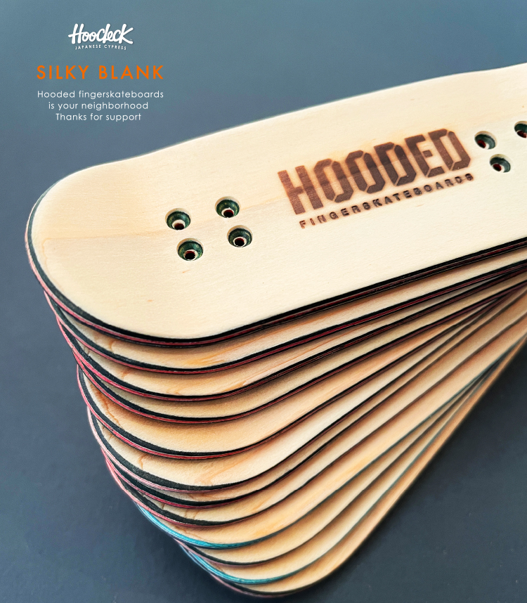 私たち「フーデッド・フィンガースケートボード」はプロ・フィンガースケーターが使用する木製のデッキもハンドメイドで作っています。
